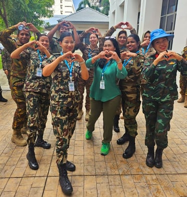 The Director of WWG was in peace centre Bangkok Thailand, 27 October- 5 November 2024 as instructor for women in peace keeping operation course (WMPOC ) , supported by Gender Association and UN Women . There are around 25 women from different ranks as participants from Malaysia, Thailand, Mongolia, Timor Leste, Papua New Guinea, Nepal, Sri Lanka, Fiji, Vietnam.